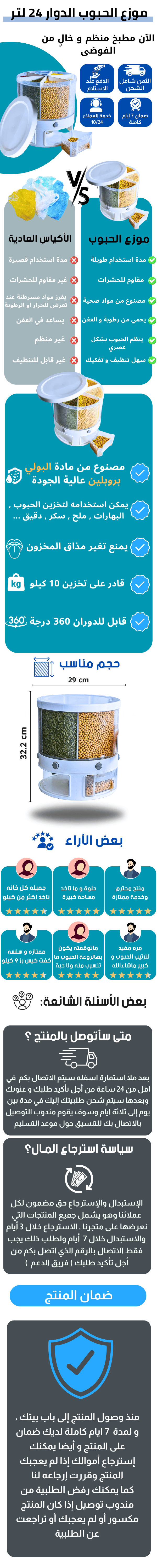موزع الحبوب الدوار من 6 أقسام المميزات
